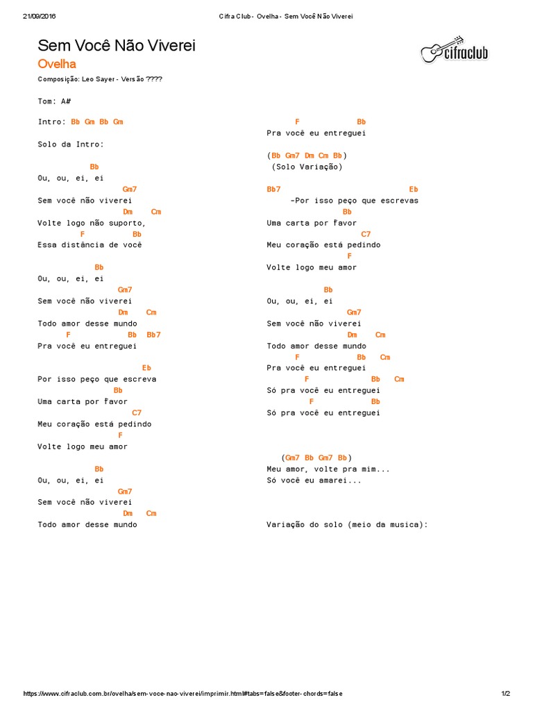 Sem Voce Cifra