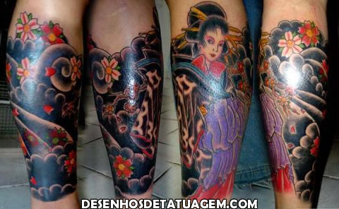 Tatuagem Gueixa Masculina Colorida
